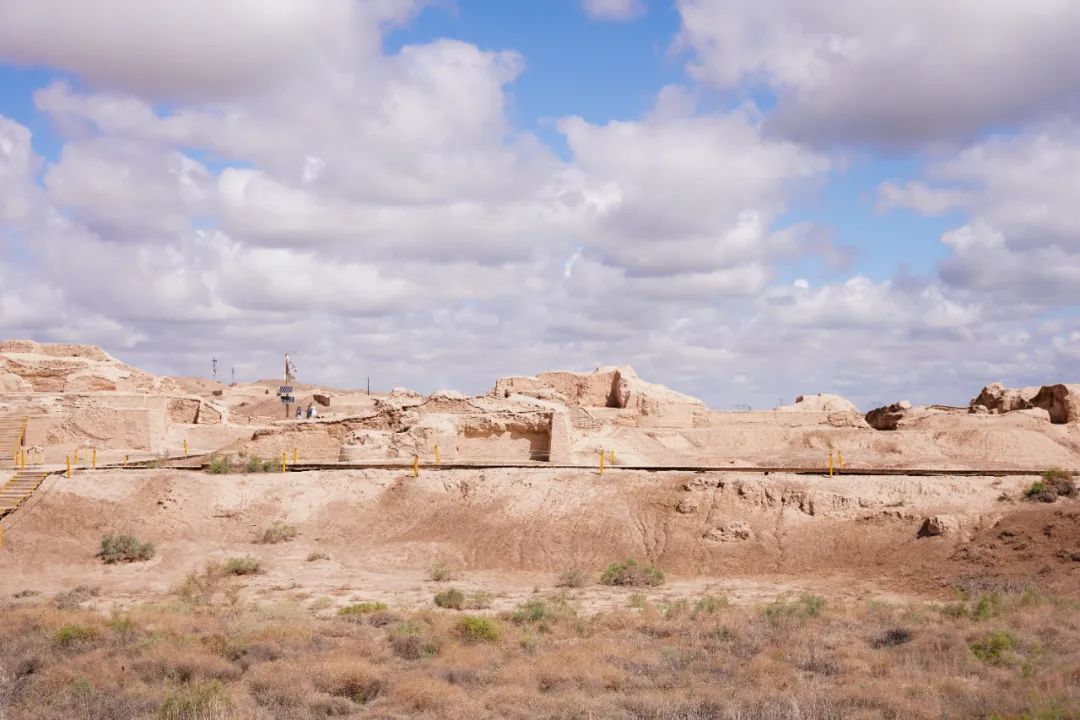 实践团成员率先来到七个星佛寺遗址,七个星佛寺遗址始建于晋代,一直延续到宋元,总面积约8万平方米,以遗址中部的泉沟为界,寺院遗址分南、北两大部分。遗址残存佛塔、僧房、大小殿堂等建筑93处,是印度佛教东传和中原佛教西渐过程中的重要遗址,也是古焉耆的佛教中心。七个星佛寺遗址出土的泥塑佛、壁画、建筑装饰构件、回鹘文木牍及吐火罗文抄写的《