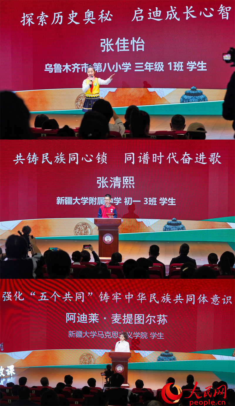 活动中,来自乌鲁木齐市第八小学、新疆大学附属中学、新疆大学的学生,分享了他们对这堂课的理解感悟。